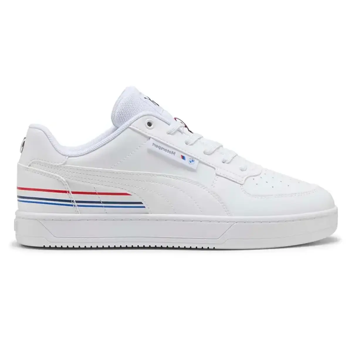 Белоснежный цвет модели Caven 2.0 создает чистый и современный образ, который легко комбинируется с любой одеждой. Фирменные элементы BMW M Motorsport включают контрастные синие и красные полосы на боковой части, отсылающие к гоночной эстетике. Низкий профиль и обтекаемый силуэт делают эти кеды стильным акцентом в повседневном гардеробе. Качественные материалы гарантируют, что обувь сохранит первоначальный вид даже после длительного использования.