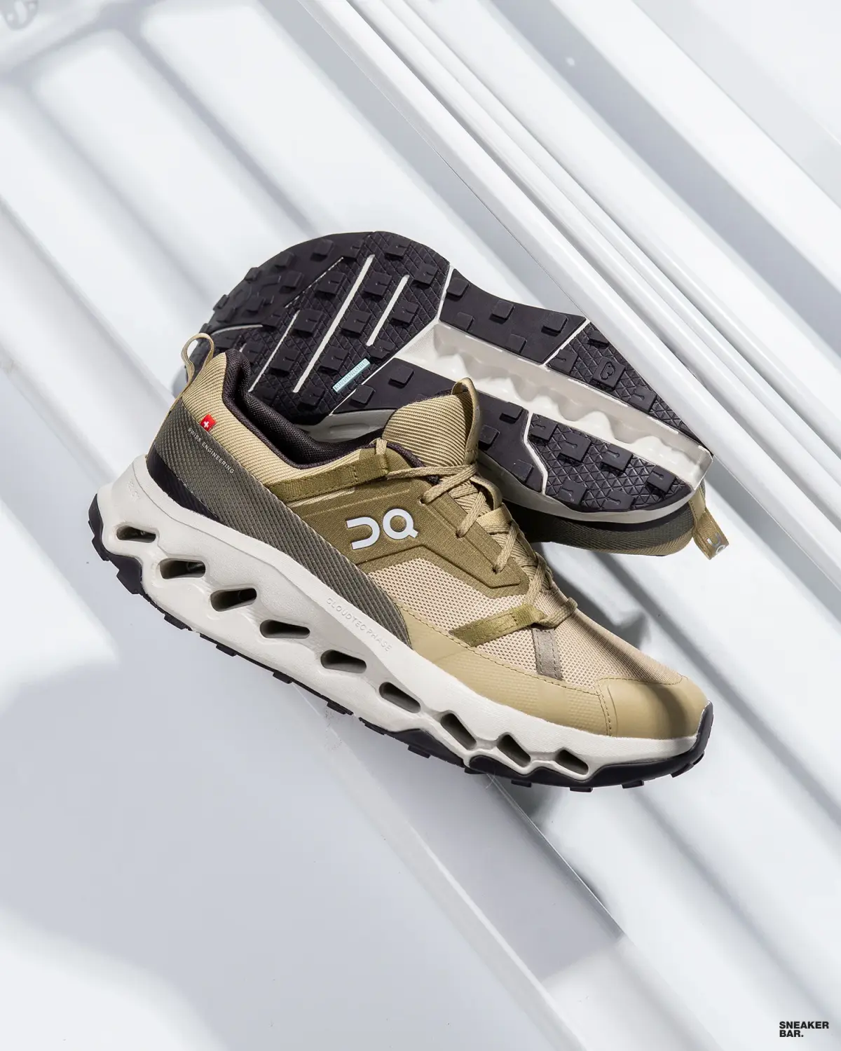 Ключевой особенностью модели является технология CloudTec®, обеспечивающая мягкое приземление и плавный переход к отталкиванию. Подошва из легкого материала Helion™ superfoam гарантирует амортизацию и энергоотдачу, что делает каждый шаг комфортным даже на длинных дистанциях. Верх выполнен из дышащего текстиля, который обеспечивает оптимальную вентиляцию и надежную фиксацию стопы. Цветовая гамма Safari/Ice с бежевой подошвой и серо-зелеными акцентами подчеркивает современный минимализм, а низкий профиль обуви добавляет ей легкости и универсальности.