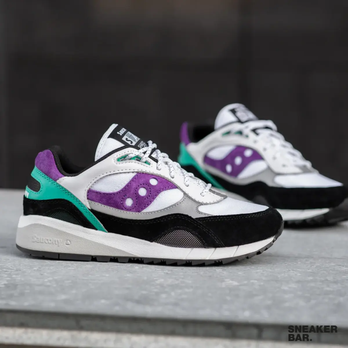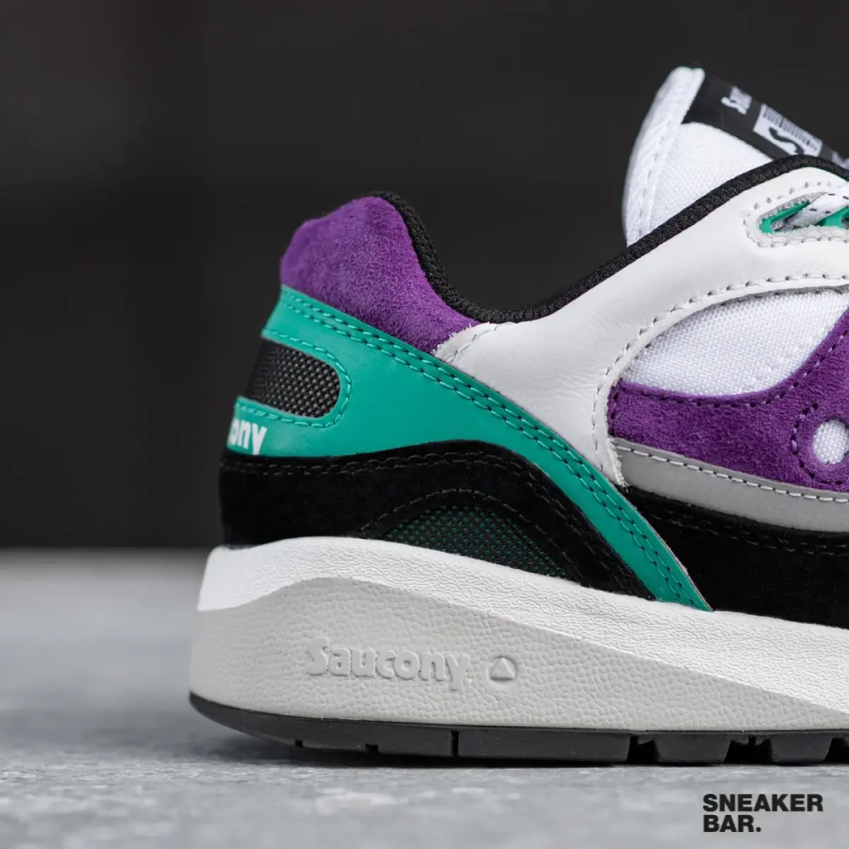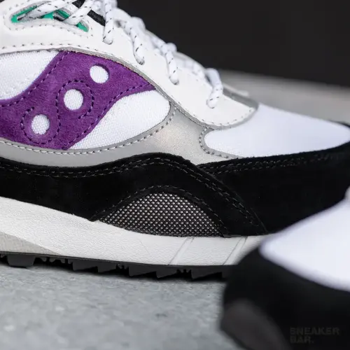 Классические кроссовки, которые идеально поддерживают стопу и обеспечивают потрясающую амортизацию, которую вы ожидаете от Saucony. Пара выполнена из замши и кожи. Модель представлена в сочетании черного, белого, фиолетового и зеленого цвета.