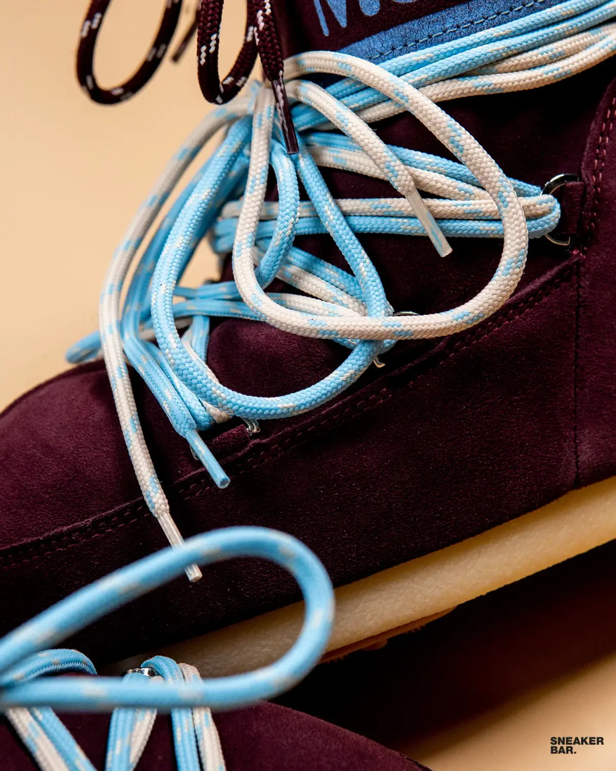 Данная пара из коллекции AW25 выполнена в насыщенном бордовом цвете, который эффектно контрастирует с бежевой подошвой и голубыми шнурками. Верх изготовлен из мягчайшей нубуковой замши, что сразу указывает на высокий статус модели. Качественная кожа обеспечивает не только стильный внешний вид, но и долговечность, позволяя ботинкам годами сохранять форму и привлекательность. Высокий крой модели надежно фиксирует голеностоп, добавляя образу уверенности.