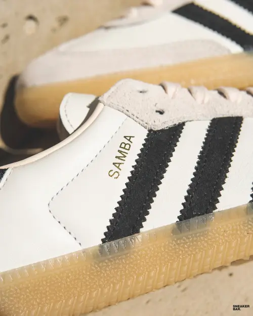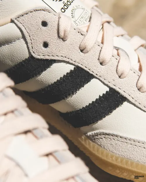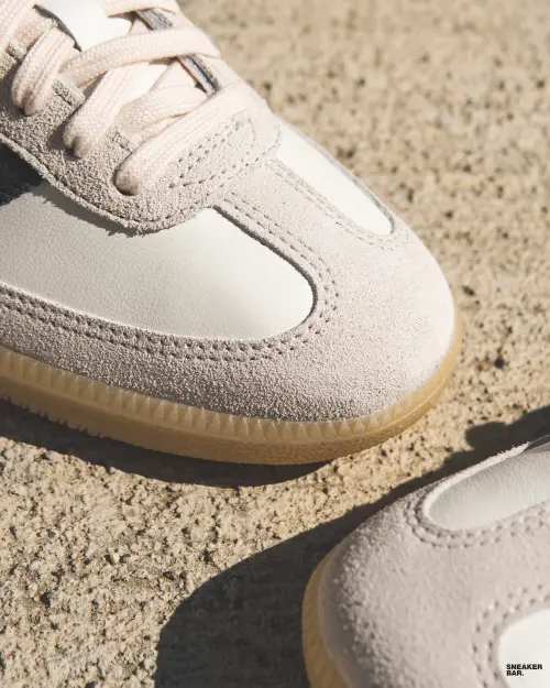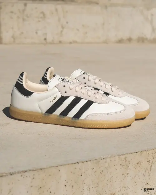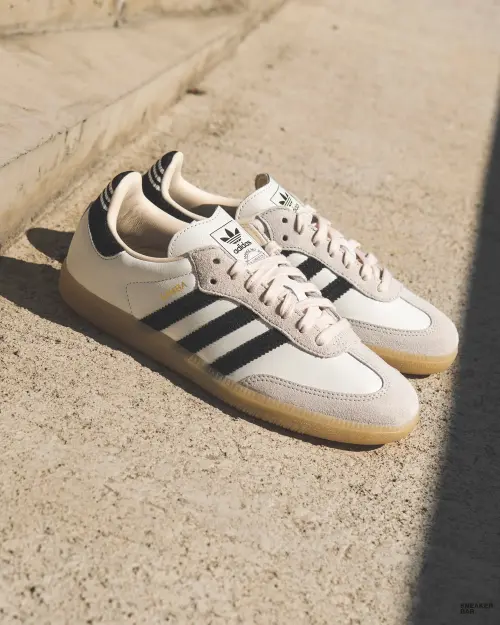 Цветовая гамма этой модели — белый, демонстрирующий безупречный вкус. Верх выполнен из гладкой натуральной кожи, которая с годами носки приобретает уникальный шарм и патину, делая каждую пару уникальной. Классические три полоски adidas по бокам, знаковый язычок с надписью Samba и фирменная резиновая подошва с контрастным черным мыском — все детали остались неизменными, как и десятилетия назад. Этот лаконичный силуэт идеально впишется в любой гардероб, будь то повседневный кэжуал-лук или утонченный streetwear-образ.
