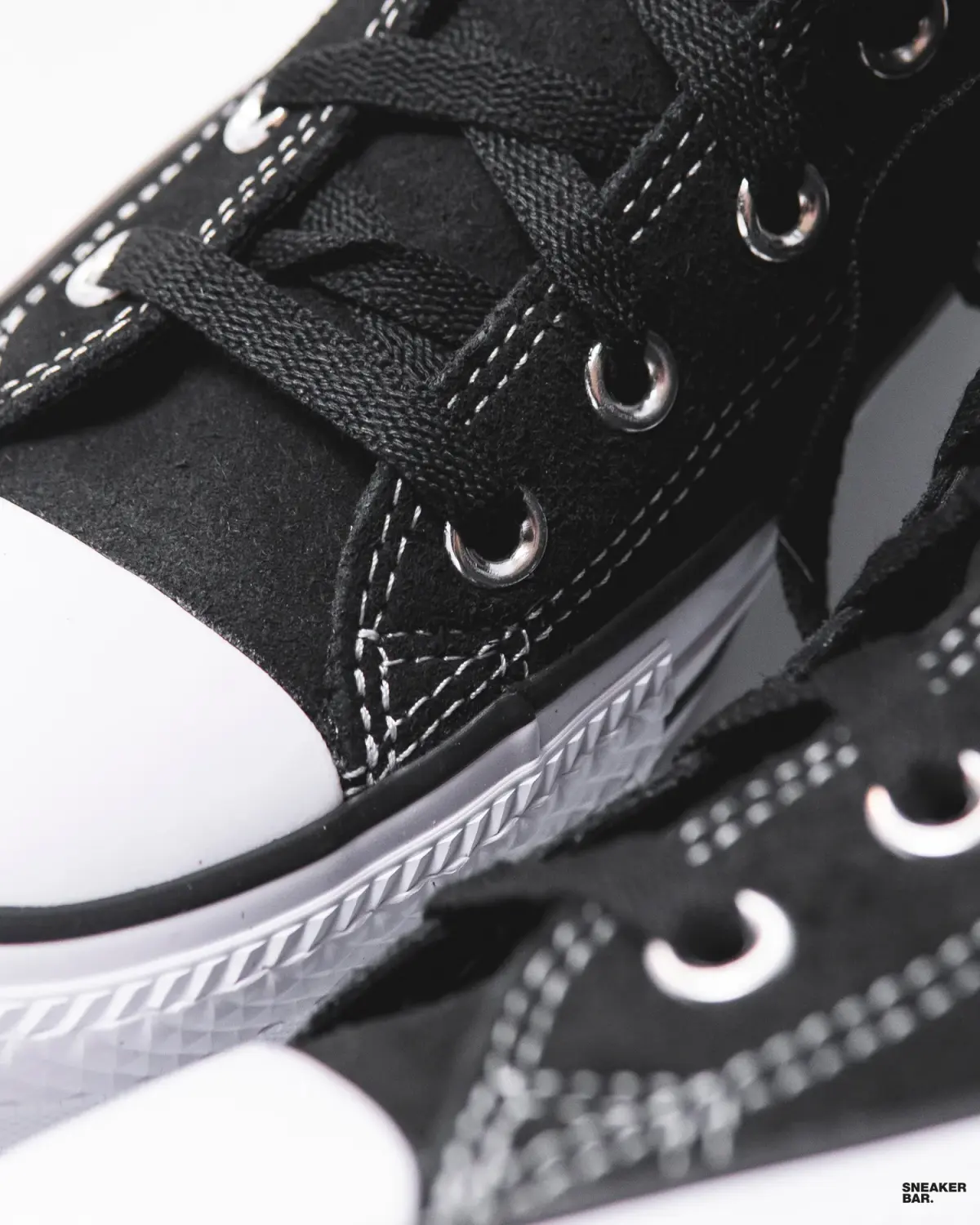Черный верх из прочного текстила и натурального канваса создает лаконичный и стильный образ. Контрастные белые детали — кант, шнуровка и знаменитая нашивка All Star на щиколотке — добавляют характерной графичности. Белая подошва из износостойкой резины не только завершает эстетику, но и обеспечивает надежное сцепление. Эта цветовая схема «черный-белый» делает кроссовки невероятно универсальными, позволяя комбинировать их с джинсами, чиносами или даже платьями.