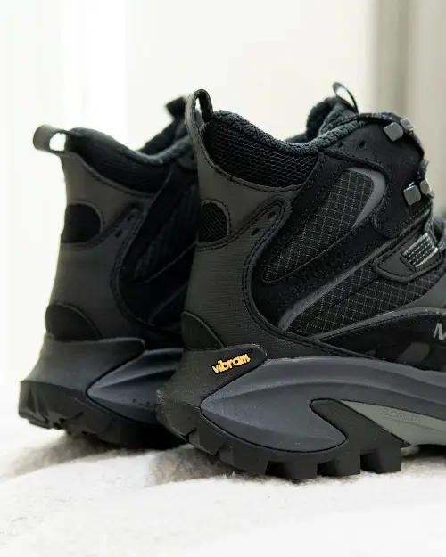 Визуально Merrell Moab Speed 2 Thermo Mid WP — это мощная заявка. Сочетание глубокого черного верха с контрастными синими акцентами и черной подошвой создает агрессивный, но сбалансированный образ. Высокое голенище не только добавляет защиты, но и завершает стиль, отсылающий к утилитарной эстетике, которая сейчас на пике популярности. Эти мужские кроссовки из коллекции AW25 — идеальный выбор для тех, кто ценит надежность и хочет выделиться. Они легко сочетаются с техник-стайл одеждой, плотными джинсами или функциональными штанами.