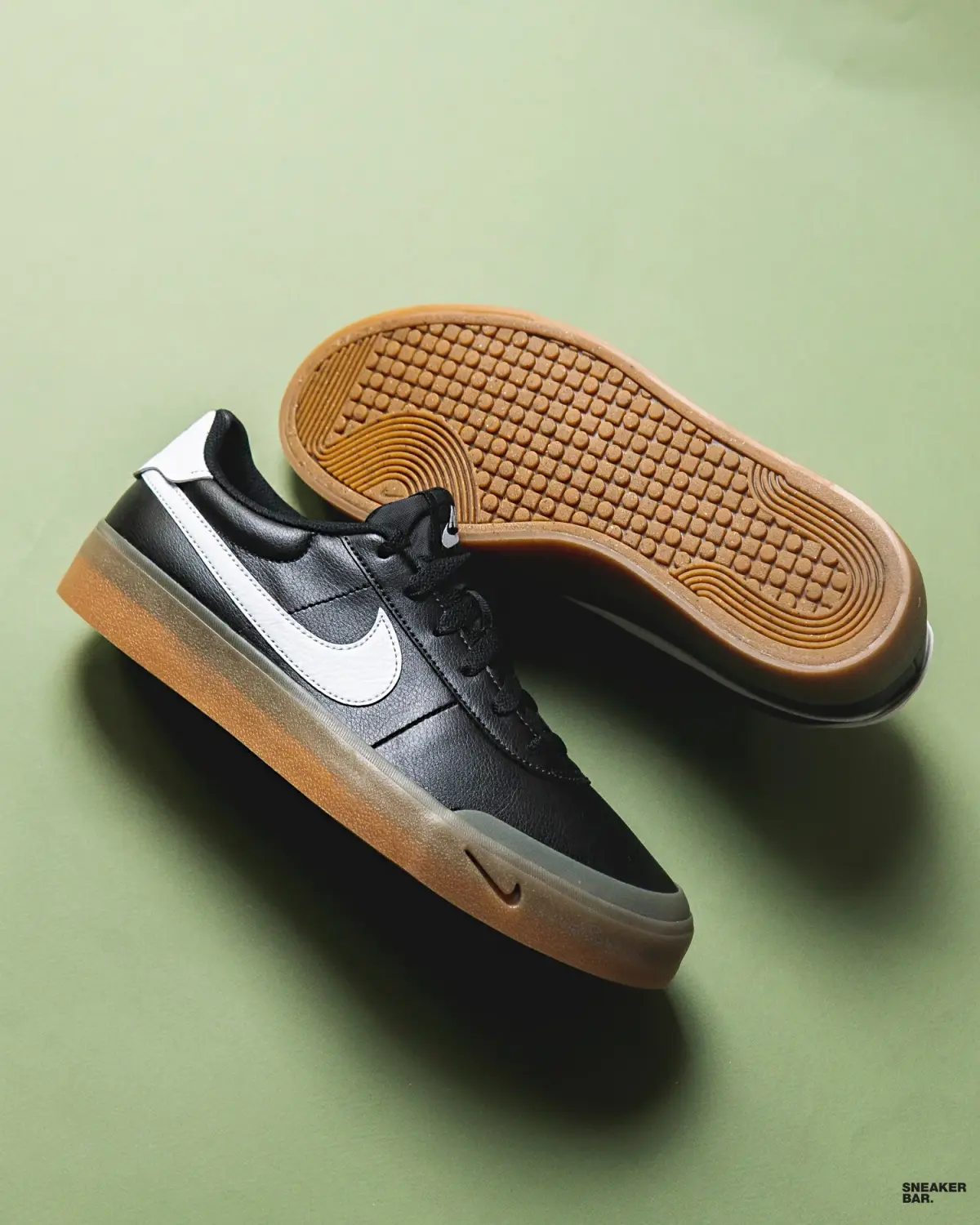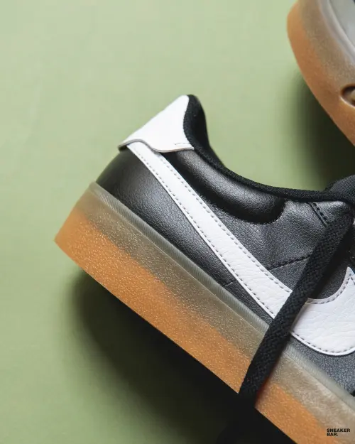 Модель Nike Court Shot в цветовой схеме FQ8146-003 представляет собой идеальный баланс сдержанности и стиля. Верх из качественной гладкой кожи черного цвета обеспечивает премиальный вид и долговечность. Контрастные белые детали на язычке и подкладке, а также фирменный логотип Swoosh создают узнаваемый акцент. Особую изюминку добавляет подошва насыщенного коричневого оттенка, которая придает паре ретро-характер и делает ее невероятно универсальной. Это те самые низкие кроссовки, которые легко интегрируются в любой гардероб.