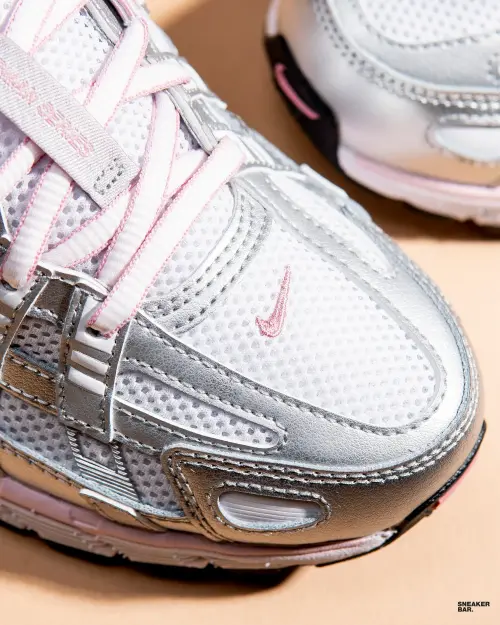 Представленная в нашем магазине цветовая схема BV1021-108 это свежая интерпретация женственного и стильного образа Доминирующий белый цвет верха в сочетании с серебристыми акцентами создает чистый и светлый визуал который идеально впишется в любой гардероб Розовый подбор цвета на язычке и других деталях добавляет игривую и модную нотку делая эти кроссовки Nike P-6000 по-настоящему уникальными Низкий крой и комбинированные текстильные материалы обеспечивают легкость и сезонную универсальность Белая подошва завершает образ делая его визуально легким