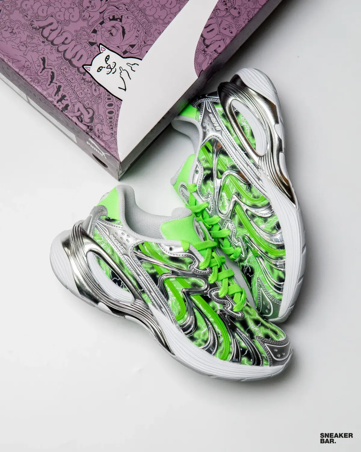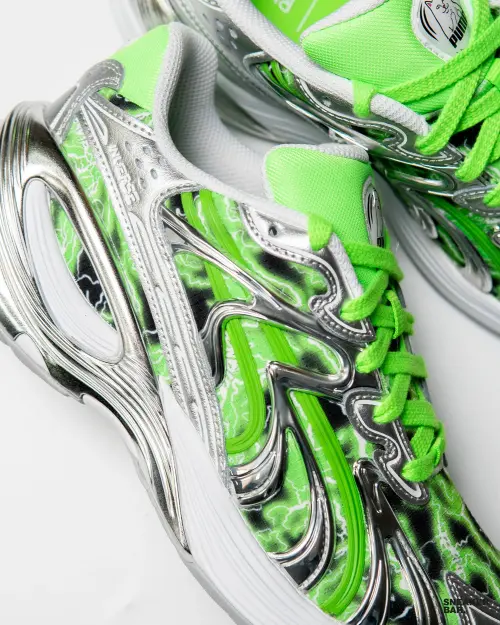 Стиль рождается на пересечении культур, и кроссовки Puma Inverse x RIPNDIP – яркое тому доказательство. Эта модель из коллекции AW25 стала результатом дерзкого союза легендарного спортивного бренда и иконоборческого скейт-лейбла RIPNDIP. Puma, основанная в 1948 году, всегда была в авангарде уличной моды, а ее сотрудничество с бунтарским брендом, известным своим провокационным котом Lord Nermal, создало настоящий граффити-взрыв в мире лайфстайл-обуви. Модель Inverse, вдохновленная архивными силуэтами 90-х, получила новое, абсолютно уникальное прочтение, мгновенно став must-have для ценителей эксклюзива.