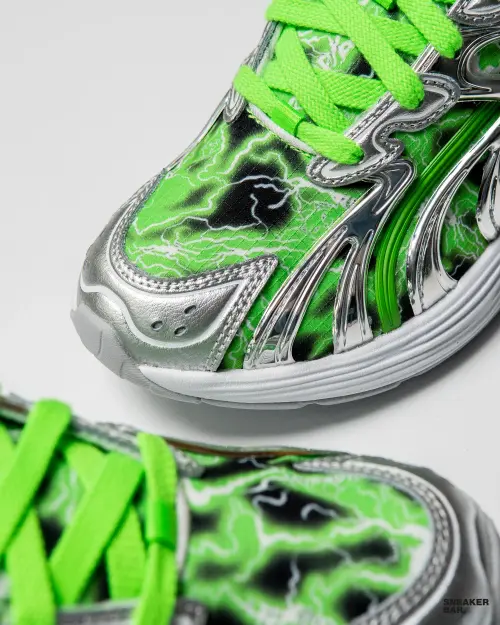 Эти мужские кроссовки низкого кросса притягивают взгляды насыщенным зеленым цветом верха, выполненного из качественного текстиля. Именно такая палитра выбрана не случайно – она отсылает к фирменным оттенкам RIPNDIP и идеально вписывается в осенне-зимние тренды. Детализация впечатляет: фирменная форма язычка, контрастные логотипы и, конечно, узнаваемые принты коллаборации. Белая подошва не только визуально облегчает силуэт, но и подчеркивает чистоту линий. Это идеальный выбор для создания смелого повседневного образа, где каждая деталь имеет значение.