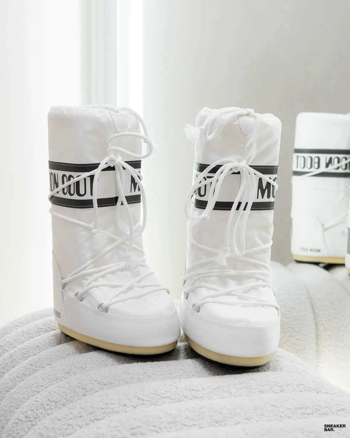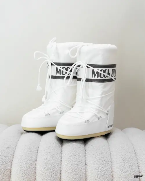 Эти женские ботинки — идеальный выбор для создания модного зимнего лука. Они беспроигрышно сочетаются с объемными пуховиками, узкими джинсами, уютными платьями и спортивными штанами. Белый цвет модели Icon Nylon делает ее ярким акцентом в пасмурную погоду. Благодаря прочным материалам и качественной сборке, луноходы от Moon Boot отличаются завидной долговечностью и сохраняют форму даже при активной носке.