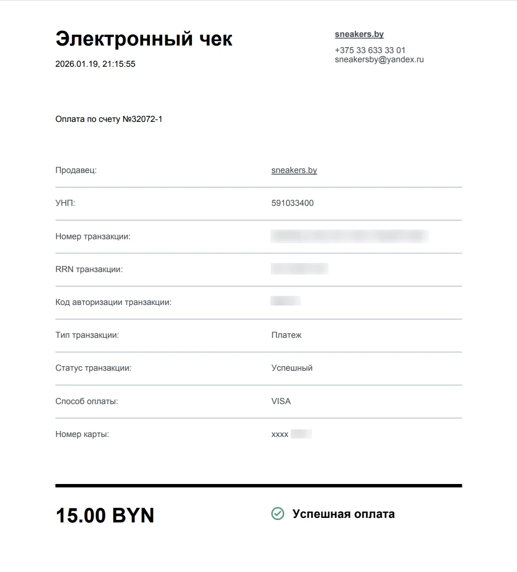 После совершения оплаты с использованием банковской карты необходимо сохранять полученные карт-чеки (подтверждения об оплате) для сверки с выпиской из карт-счёта (с целью подтверждения совершённых операций в случае возникновения спорных ситуаций).